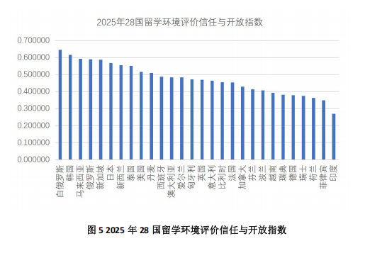 就信任与开放指标而言,28个国家得分排序依次为:白俄罗斯、韩国、马来西亚、俄罗斯、新加坡、日本、新西兰、泰国、美国、丹麦、西班牙、澳大利亚、爱尔兰、匈牙利、英国、意大利、比利时、法国、加拿大、芬兰、波兰、越南、瑞典、德国、瑞士、荷兰、菲律宾、印度。
