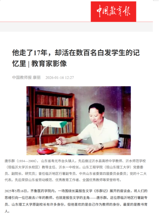 近日,《中国教育报》刊发题为《他走了17年,却活在数百名白发学生的记忆里 | 教育家影像》的感人报道。