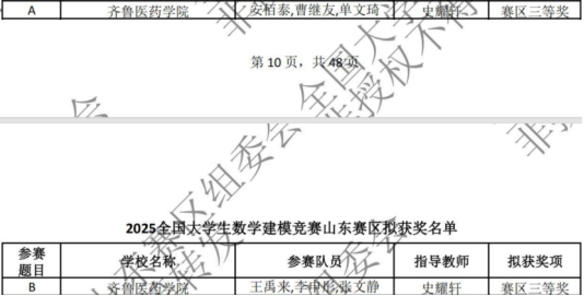 近日,齐鲁医药学院学子参加2025年全国大学生数学建模竞赛,共获得省级三等奖2项,充分展现出鲁医学子扎实的数学应用能力、跨学科建模水平以及团队协作精神。