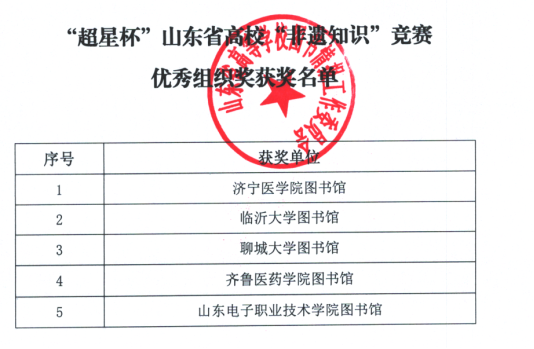 齐鲁医药学院图书馆组织学生积极备赛、踊跃参与,共斩获二等奖3项、三等奖3项、优秀奖1项,学校图书馆荣获优秀组织奖。