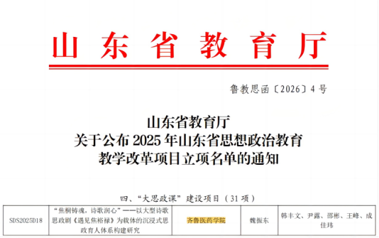 齐鲁医药学院成功获批山东省思想政治教育教学改革项目立项