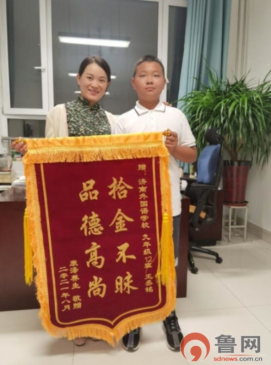 拾金不昧感动失主 济南外国语一学生开学收到“品德高尚”锦旗