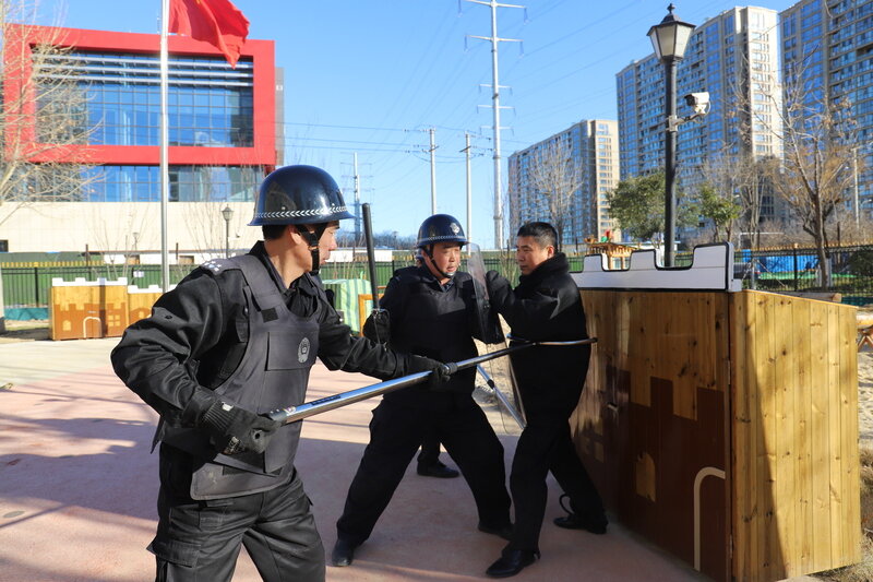 进行答辩题目,主要考察保安员与家长沟通与外来人员沟通的方式方法等情况,通过领导的现场点评和同伴的现场支持,是保安员现场答辩以及日常接待工作更加细致周全,最后进行的实操均为保安日常使用器械,提高保安员日常工作效率,以促进保安安保工作落到实处。