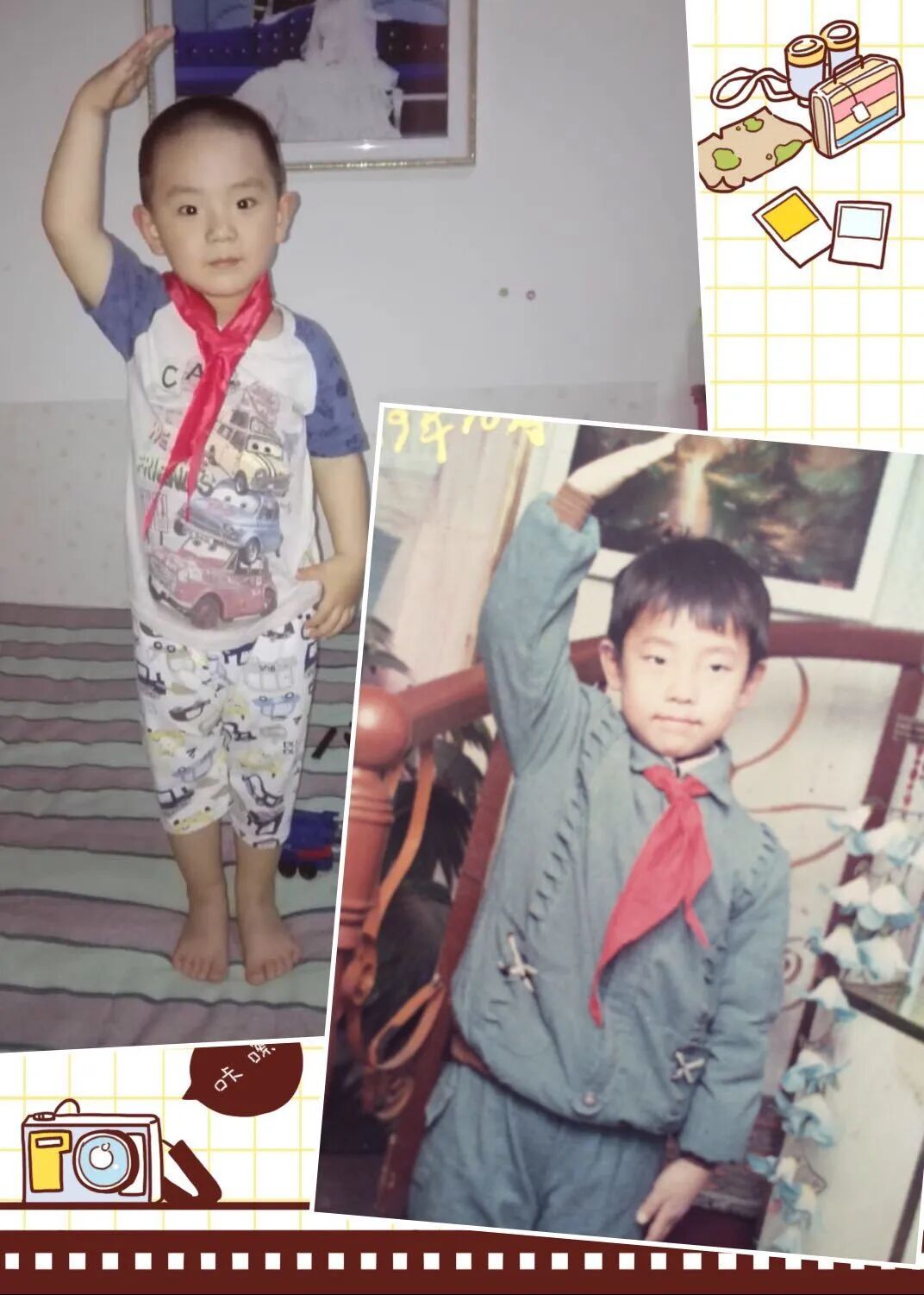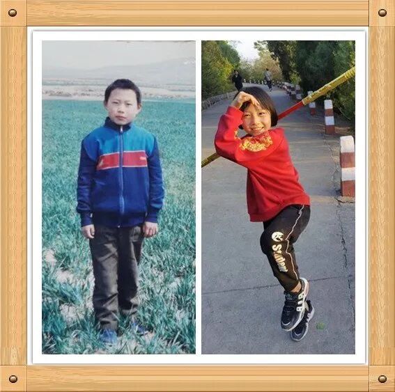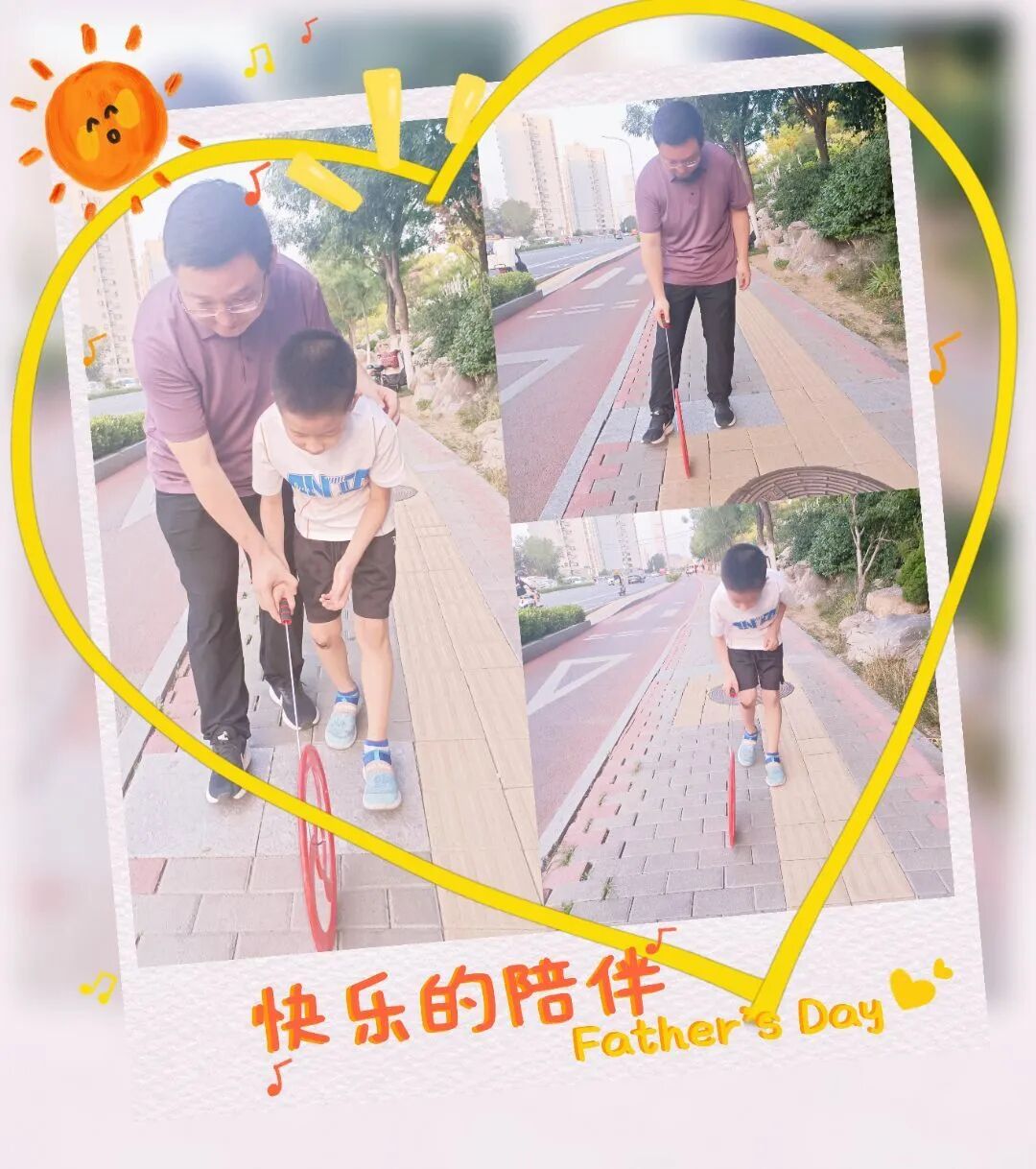 为了给爸爸们献上一份特殊的节日祝福,同学们精心设计了自己与父亲童年照的同框照片。