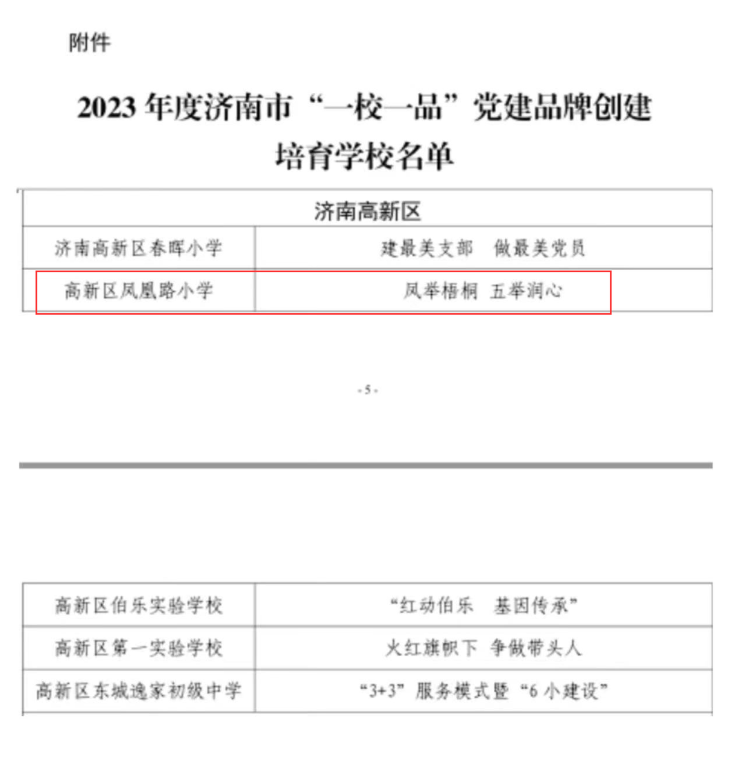 鲁网12月22日讯 近日,在济南市委教育工委公布的济南市教育系统“一校一品”党建品牌创建培育学校中,济南高新区凤凰路小学党建品牌“凤举梧桐 五举润心”成功被确定为2023年度济南市教育系统“一校一品”党建品牌创建培育学校。