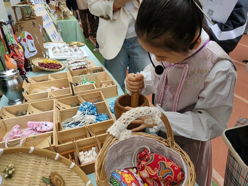 在中医药游戏体验区,教师和孩子们集思广益,共同动手创设了中医药馆、理疗馆、养生茶馆、食疗馆、香包体验区……大家纷纷驻足体验,感受中医的独特魅力。