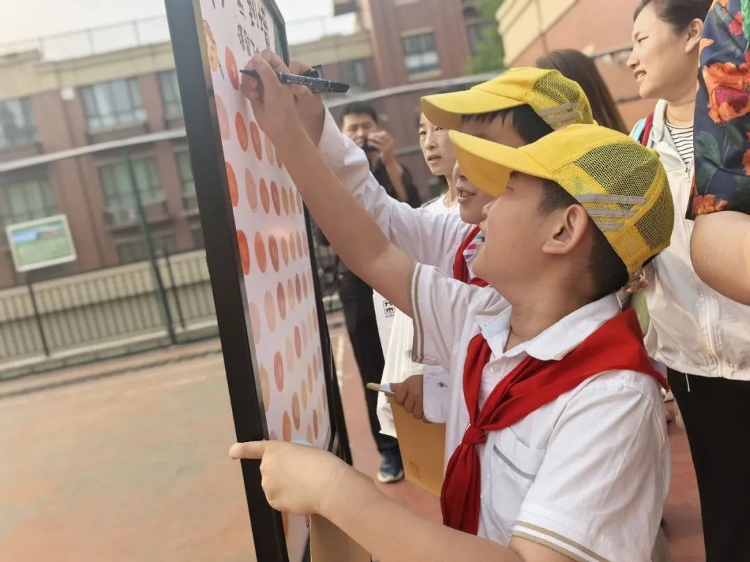 同学们和父母纷纷来到班级签到处,在签到处画上属于自己的笑脸,眼睛、鼻子、嘴巴,大家画的都各不相同,却都彰显了自己的个性,特殊的签到方式,让整个现场热情洋溢。