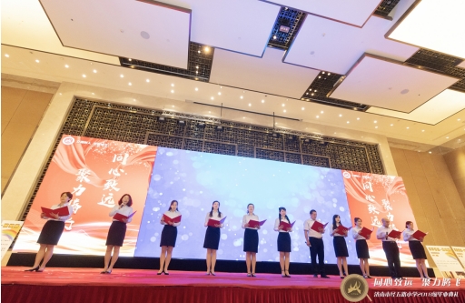 全校559名毕业生齐诵校风、学风、校训,铿锵有力,掷地有声,将经五文化在心里打下深深烙印。校歌前奏响起的瞬间,师生全体起立,将典礼活动推向了高潮。激昂向上的曲调,充满朝气,激励着学子们不断进取、勇往直前。