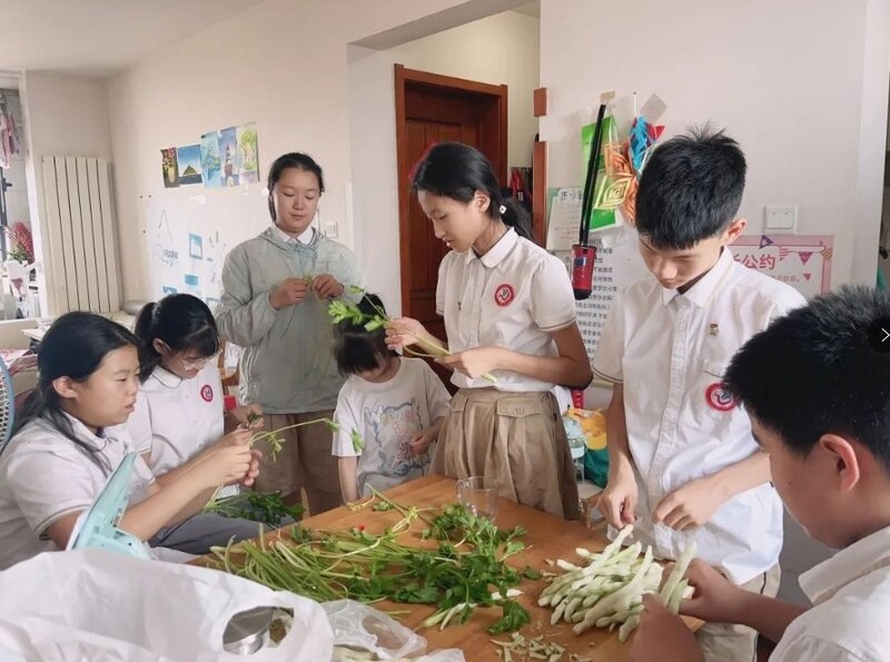 不知不觉就到了午饭时间,同学们亲手摘菜,榨西瓜汁,体验劳作的乐趣。在劳动过程中,阿姨会跟大家聊天,给大家讲蔬菜的种植成长过程,在这个过程中,大家也学会了珍惜劳动成果,懂得了付出与收获的关系。同学们还合作做菜,蒸米饭,在劳作中,大家相互帮助,共同克服困难,也展现了团结协作的精神。这些经历不仅锻炼了大家的身体,更培养了大家的责任感和团队精神。