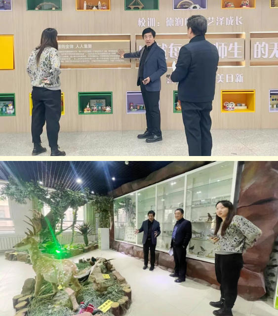从大山坡返回校园后,在张宜峰校长、李妍副校长的陪同下,参观团开启了校园文化探访之旅。他们先后走进“一方、三坊、四园、五时空”等特色空间,认真倾听张校长讲解空间文化设计理念。