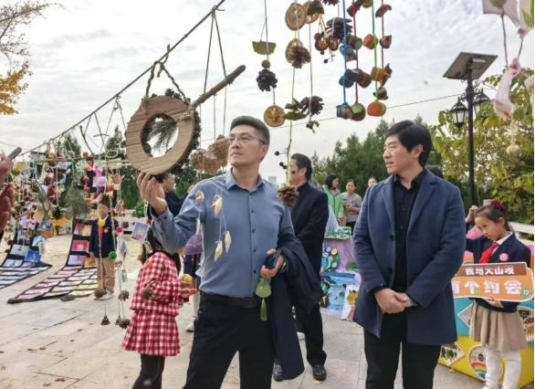 各年级的项目式学习成果,彰显着新时代少年的担当。“小凳子大创意”活动中,《大山坡的创意约定》剧目拉开序幕,废旧材料打造的多功能写生椅、带医药箱的卫生急救椅、兼具收纳与遮阳功能的绿色山坡椅,既实用又富创意。“山野拾趣,环保同行”主题活动里,松果变身摆件、枯枝串成风铃、落叶拼贴画作、石子穿上“花衣”,环保标志牌与标语则让“爱护自然”的理念深入人心。“大山坡小侦探”们,以实地调研、制定公约、清洁杂物、传递理念的实际行动为山坡“焕新”,立体地球模型旁的绿色手印、“减污・节能”板块的实践展示,见证着环保理念的落地生根。
