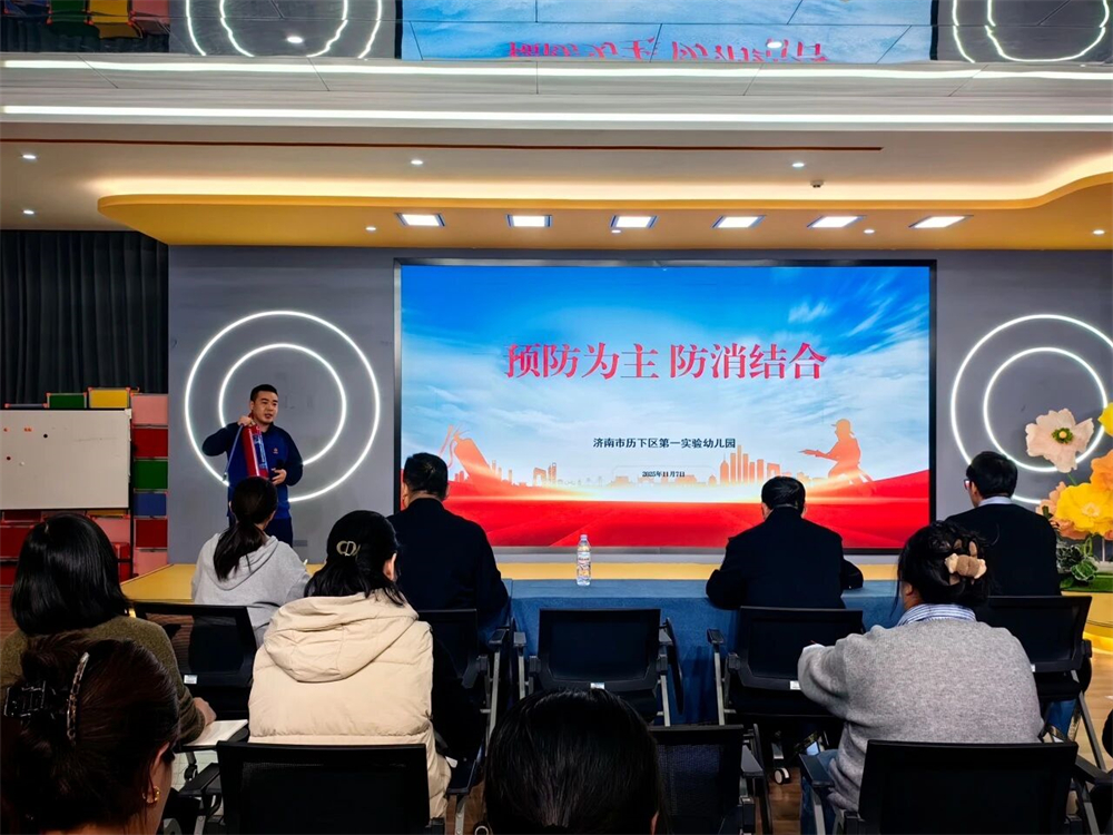 幼儿园邀请社区消防专员走进幼儿园,为全体教职工带来一场“干货满满”的消防安全培训。只有老师心中有底,孩子身边才有防线。