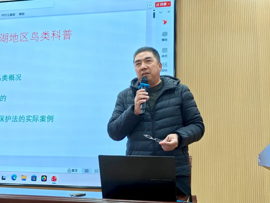 大自然是最好的课堂,身边的生态资源是宝贵的教育财富。玉清湖街道办事处崔玉荣老师作了《玉清湖鸟类研究与观测》专题讲座,带领师生认识身边的生态环境。