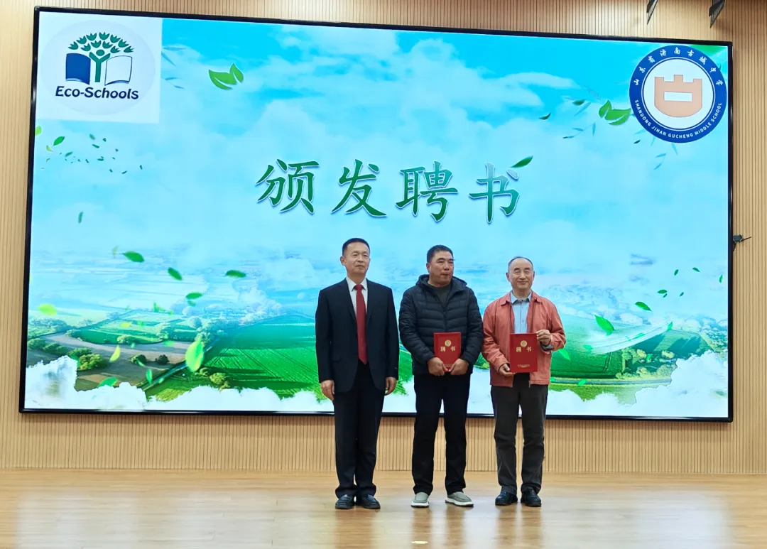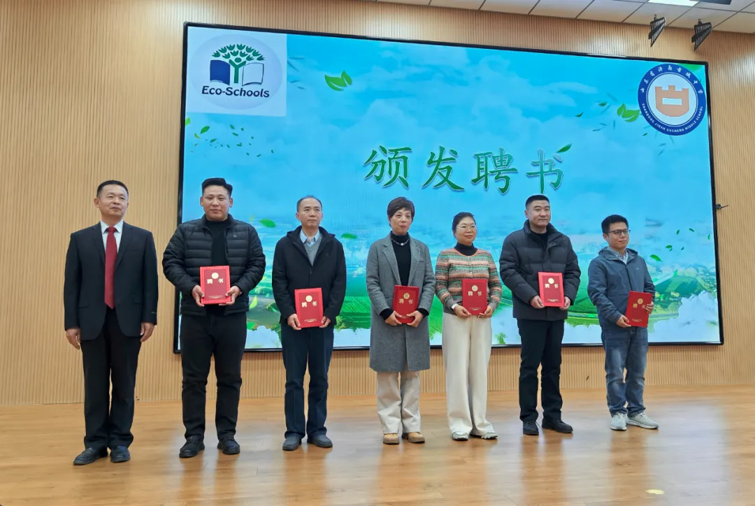 随后,杨长寨校长、崔玉荣老师被聘为“生态文明教育校外辅导员”;王静雯科长、王红科长、刘新春主任、郭永启主任、李雪主任、李延嵩经理被聘为“国际生态学校创建顾问”,为创建工作提供坚实智库支持。