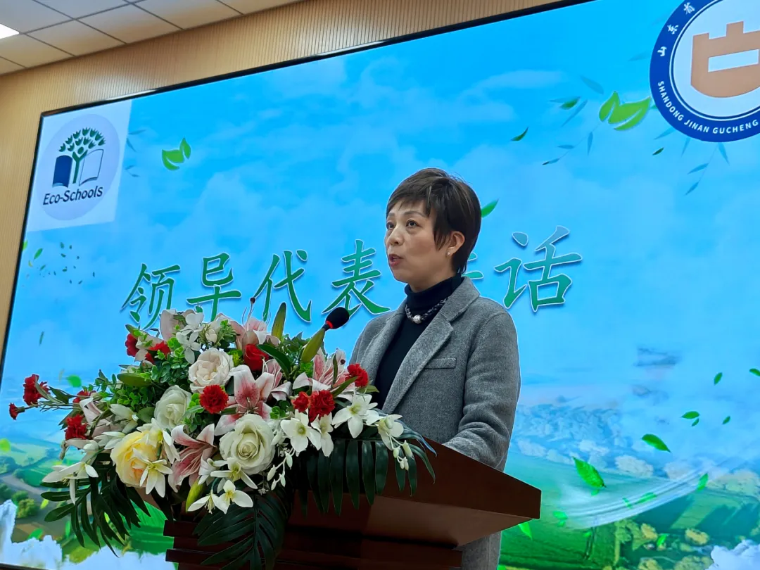 生态教育的推进,离不开上级部门的悉心指导与关怀。济南市生态环境保护宣教中心教育科王红科长作为领导代表讲话。在讲话中王科长对学校创建工作表示祝贺并提出专业指导,期待学校能够成为区域生态教育的典范。
