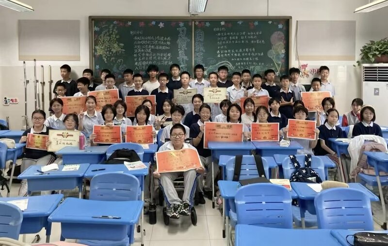 杨维军深知,对高赫君的关爱,不仅是个人的付出,更需要营造一个充满爱与包容的班级氛围。他默默引导同学们关注高赫君的需求,鼓励大家主动伸出援手,却从不刻意强调“帮助”,而是让善意成为班级的常态——让推轮椅、递文具、帮着交作业这些举动,变得像呼吸一样自然。
