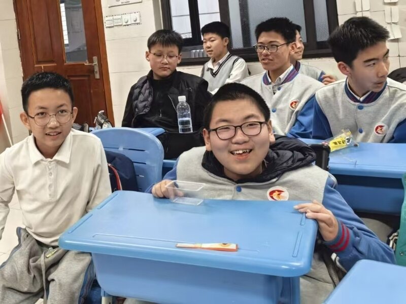 同学们看在眼里,记在心里。高赫君母亲的这份陪伴与爱,也感染着班里的每一位同学。深知高赫君的不便,同学们主动伸出援手。“需要离开教室,孙正存等同学都会主动上前,与高赫君妈妈一起将他搀扶到轮椅上,送他出教室。平日里活泼率真的男生们,此刻都变得温柔细致,格外贴心。”孙晟超作为班长,观察仔细,她说:“当赫君需要递交作业、面批错题时,总会有同学主动上前询问:‘赫君,需要我帮你把作业交给老师吗?’”他的同桌孟轩宇也很细心。高赫君身体不适时,会轻轻帮他调整胳膊的姿势;物品不慎掉落时就主动帮他捡起。