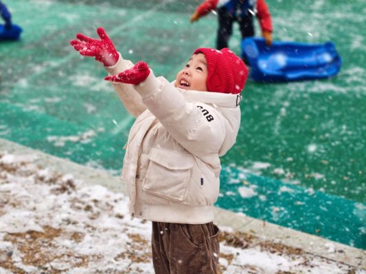 下雪啦,日常的喧嚣被一层洁白无瑕的浪漫轻轻覆盖。雪花如同天空洒落的羽毛,将人间的每一份爱都温柔地包裹,轻轻地降落在历下区百合幼教集团的百游小院里。