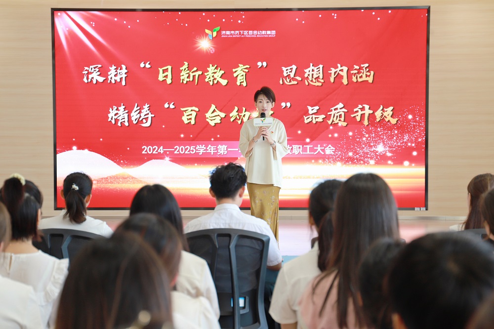 济南市历下区百合幼教集团召开“深耕‘日新教育’思想内涵 精铸‘百合幼教’品质升级”新学期开工会