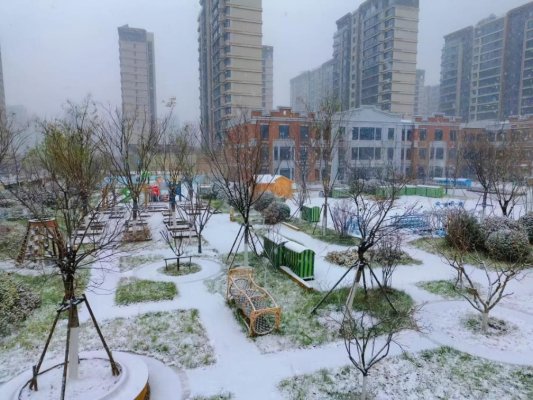 午后,初雪悄悄洒落济南市历下区第一实验幼儿园。
