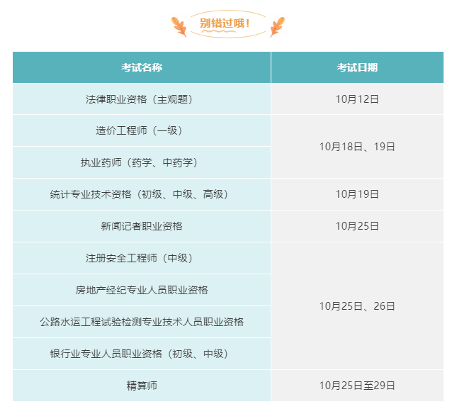 要考证的小伙伴看过来,10月专业技术人员职业资格考试时间表来啦!