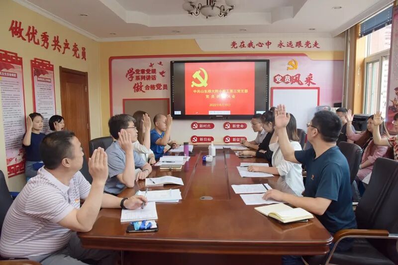 鲁网6月16日讯 6月15日上午,本部校区教工第三党支部召开党员大会,集体学习山东省第十二次党代会决议精神,讨论接收预备党员。支部全体党员和入党积极分子参加会议。