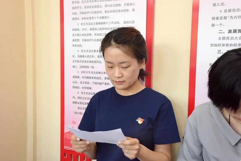 会议第二阶段,发展对象赵超、刘琮分别宣读《中国共产党入党志愿书》并汇报了个人情况,赵超的入党介绍人李耀祥、 牟珊珊,刘琮的入党介绍人曾璐、樊鹄宇依次介绍两位同志的主要表现,组织委员曾璐代表支部报告了支委会考察意见。